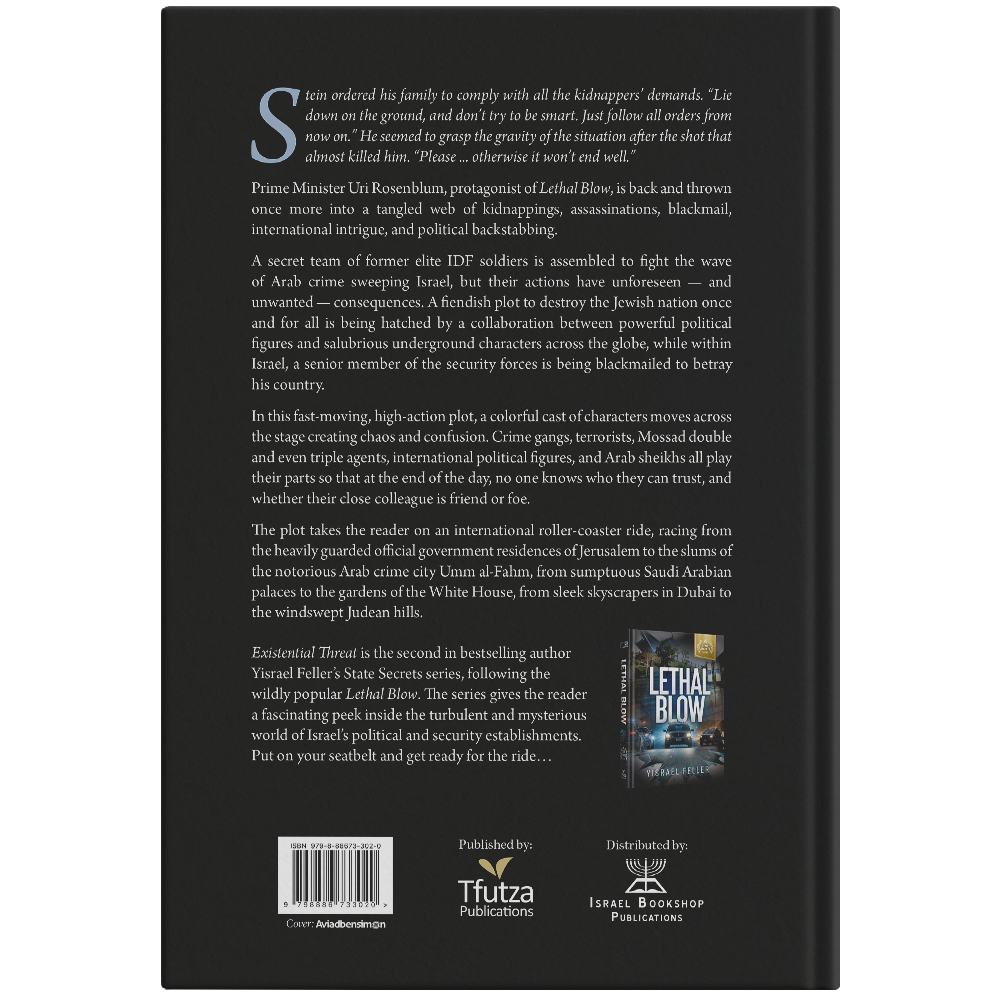 Existential Threat is the second in bestselling author Yisrael Feller’s State Secrets series, following the wildly popular Lethal Blow. The series gives the reader a fascinating peek inside the turbulent and mysterious world of Israel’s political and security establishments. Put on your seatbelt and get ready for the ride…
