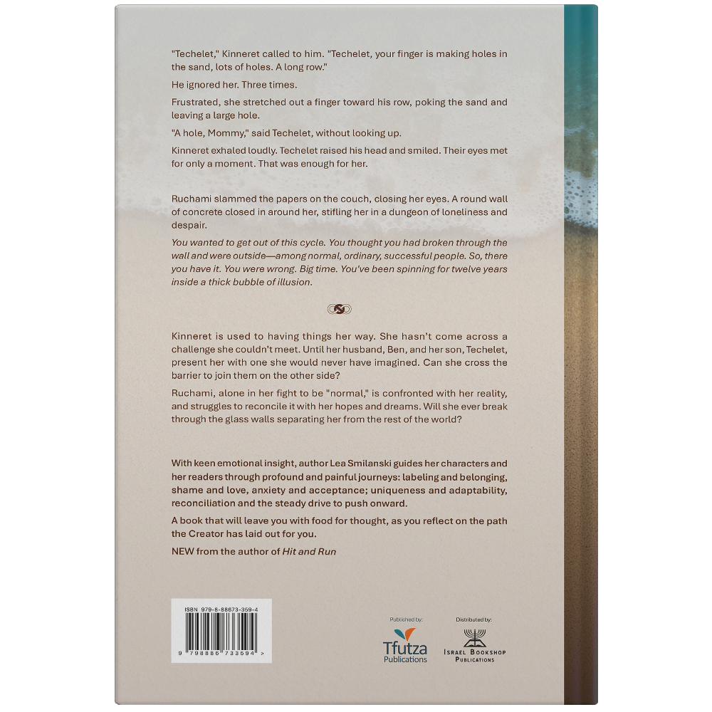 Kinneret is used to having things her way. She hasn’t come across a challenge she couldn’t meet. Until her husband, Ben, and her son, Techelet, present her with one she would never have imagined. Can she cross the barrier to join them on the other side?